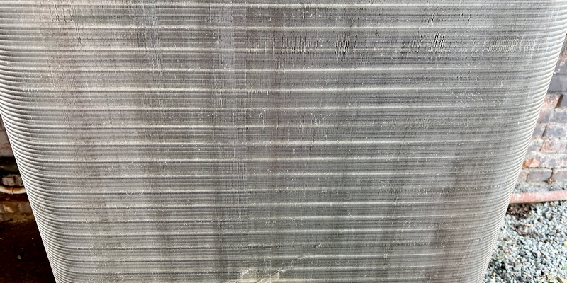 Below is an image of the outdoor unit of a heat pump / AC system after one year. Heat pumps, unlike AC units, run nearly year round, leading to a much shorter cleaning schedule than a pure AC system.