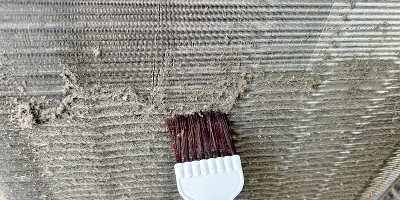 Notice the tight spacing between the fins. Heat pumps work by drawing air into the cabinet and (in this model) expelling it upward through the top. As you can imagine, this level of debris greatly reduces the ability of the unit to exchange heat with the outside air. Be careful if you go the DIY route, as the fins are constructed of very thin aluminum and are easily damaged during the cleaning process.