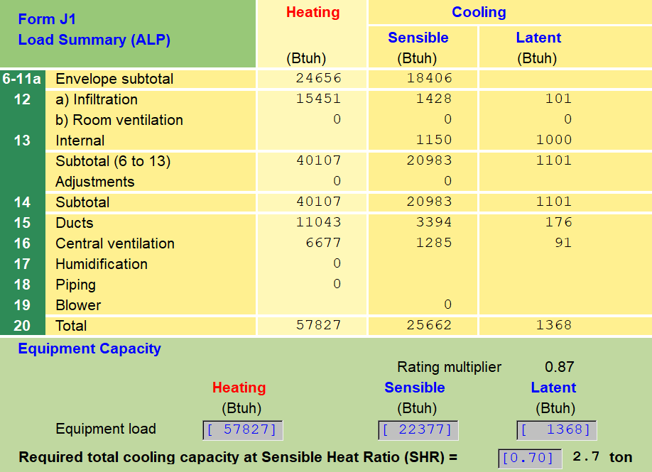 Every project we complete begins with a thorough Manual J load calculation via Wrightsoft.  While often skipped or only given a cursory glance, this is the most critical part of the process.  Modern custom homes often contain unique configurations, such as large areas of glazing that can profoundly impact the load requirements.  For example, the inclusion skylights in a room can easily increase the cooling requirements by 50%.